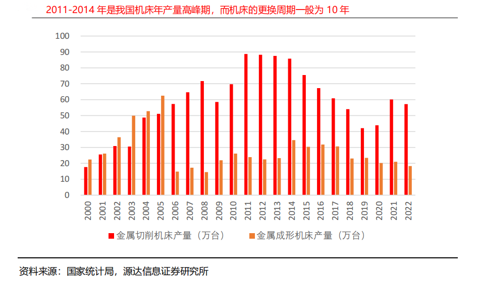 从机床更新周期看,2011-2014年是机床产量高峰期,按10年迭代周期,近几年的机床更新需求有望持续增长。