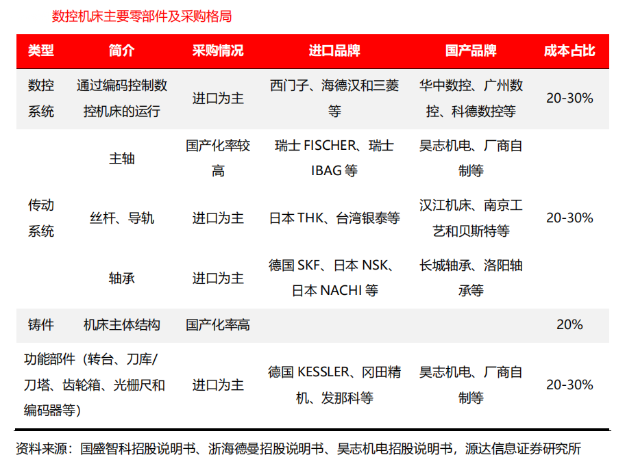 国内机床主要零部件依赖进口,不仅严重影响了国内机床主机厂的毛利率,也不利于中国装备的自主化进程,机床配件国产化迫在眉睫。一旦国际环境发生重大变化,不仅出口受阻,零部件进口也将成难题。国产机床出于自主可控等政策要求,也是响应经济内循环的号召,国内机床厂也将加强采购国产配件,如国产系统、丝杆、主轴等。